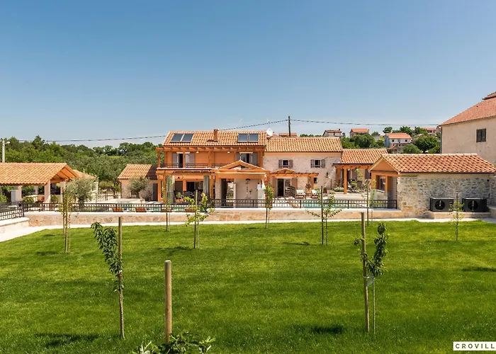 Vila Ij Dvori Skradin nabízí ubytování v 48 minutách autem z letiště Letiste Zadar. K dispozici je jacuzzi a sauna, kde si odpočinete po náročném dni.